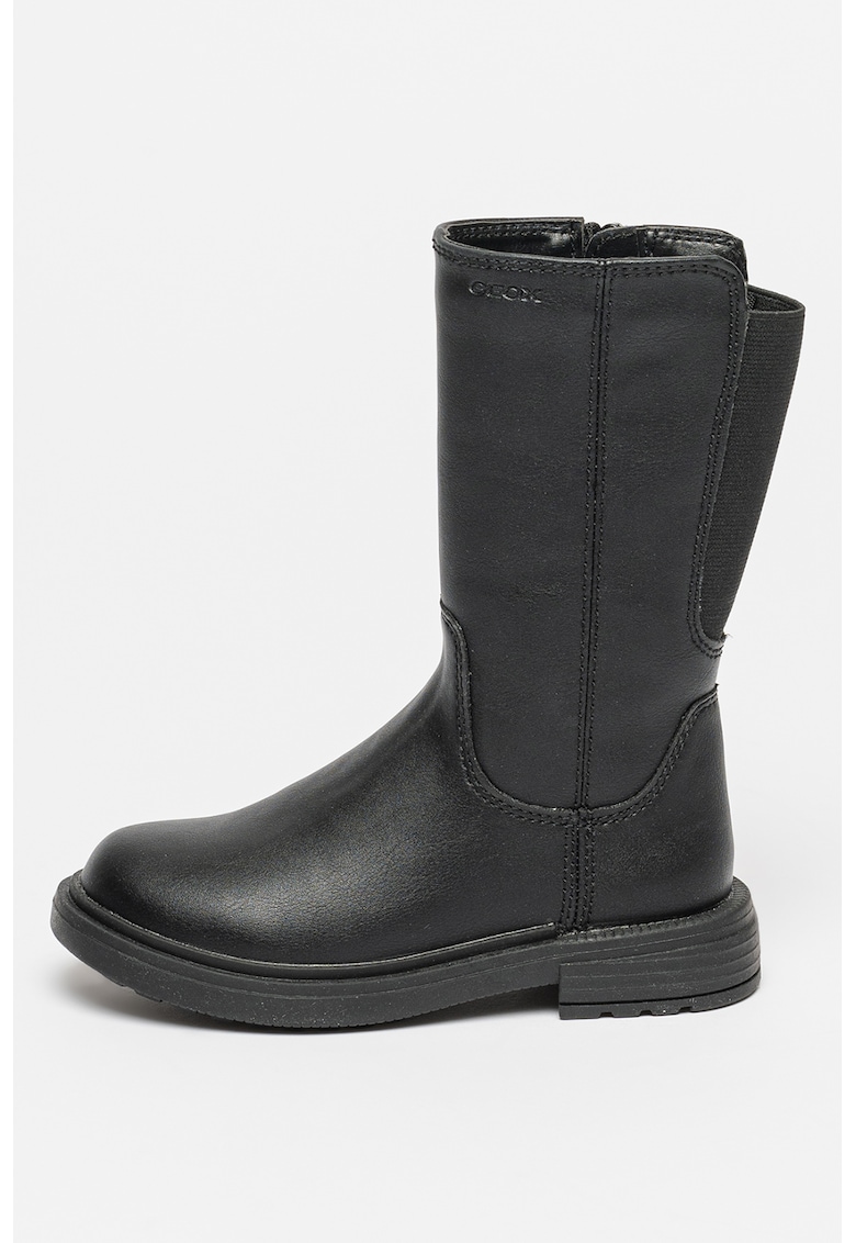 Cizme medii din piele ecologica cu fermoar - Negru