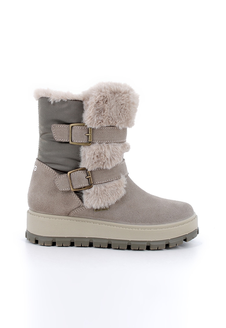 Cizme mid-calf de piele intoarsa cu garnituri de blana sintetica - Grej