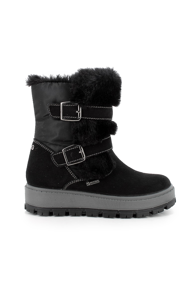 Cizme mid-calf de piele intoarsa cu garnituri de blana sintetica - Negru