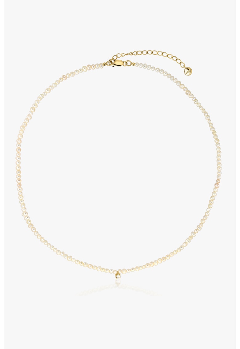 Colier placat cu aur de 14K decorat cu perle si zirconia Golden Fairy 2 Microns - Alb/Auriu
