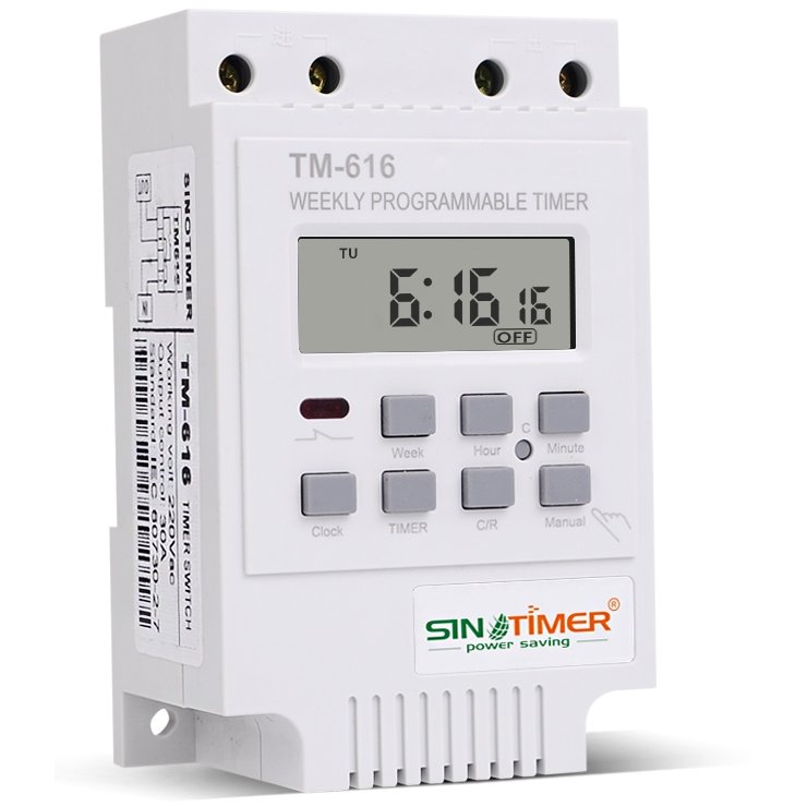 Comutator orar digital programabil saptamanal 12V 30A cu controler electronic si releu, cronometru, montare pe sina DIN SINOTIMER TM616W-2