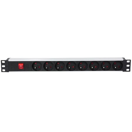Cutie de comanda 8 cai pentru rack 19 inch. - 8 cai cu comutator luminous - prize 16A - 230 V cu protective pentru copii - cutie din aluminiu eloxat,