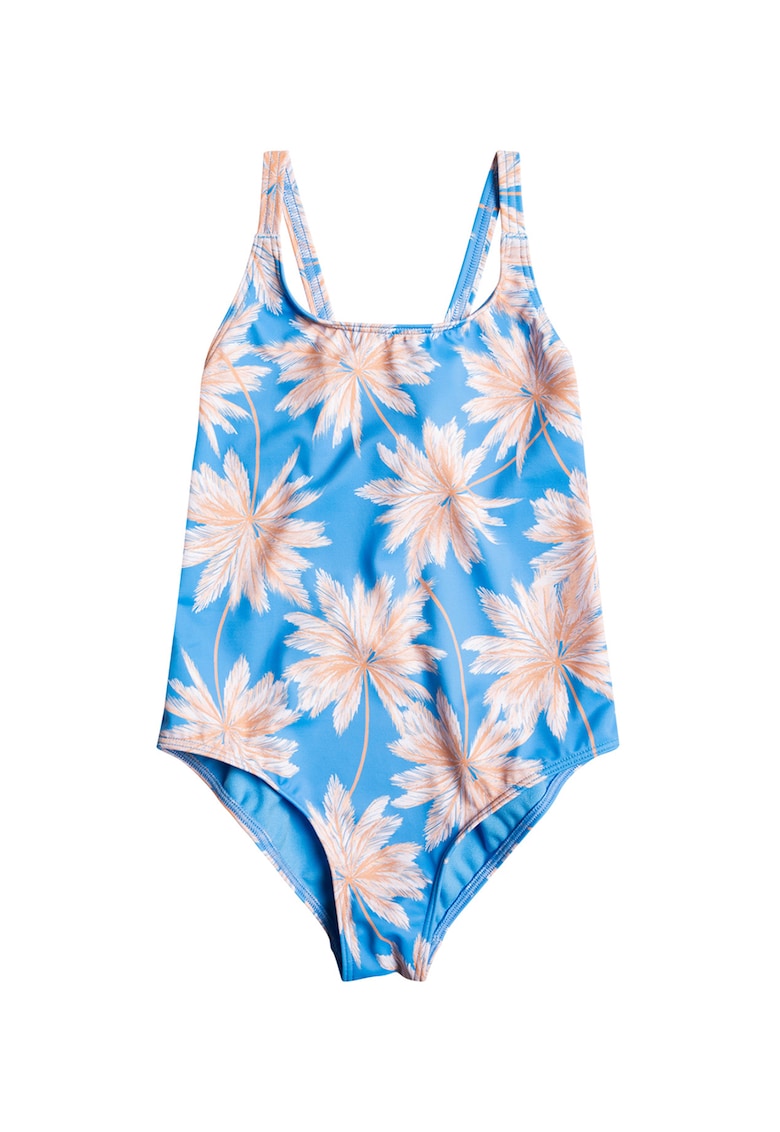 Costum de baie intreg cu model tropical Ocean Treasure - Albastru azur/Bej deschis