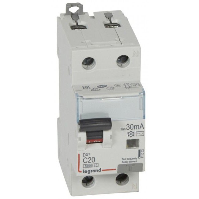 Disjunctor cu protectie diferential P+N Curba de declansare C Capacitatea de rupere: 6KA Curent Nominal 20A Sensibilitate 30 mA