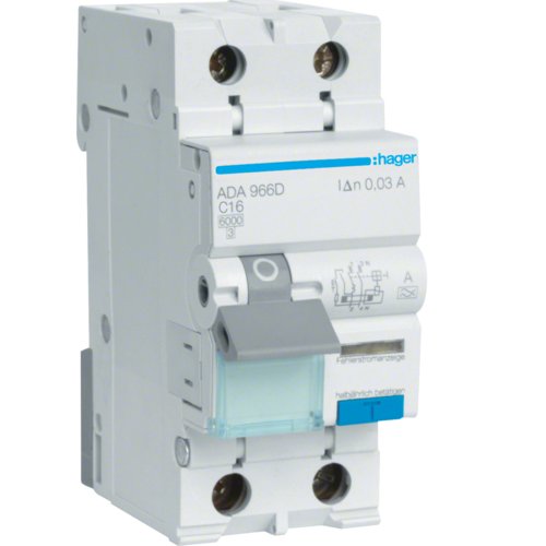 Disjunctor cu protectie diferentiala RCBO 1P+N 16A/30mA 6kA curba C tip A Hager ADA966D