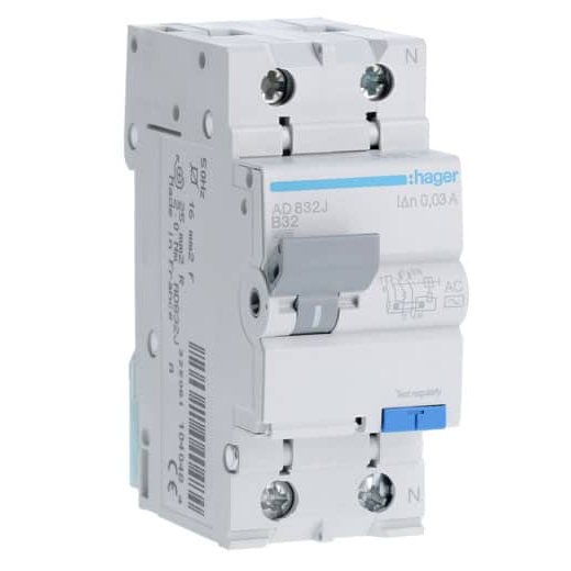 Disjunctor diferential RCBO 1P+N 32A/30mA curba B tip AC 4.5kA Hager AD832J