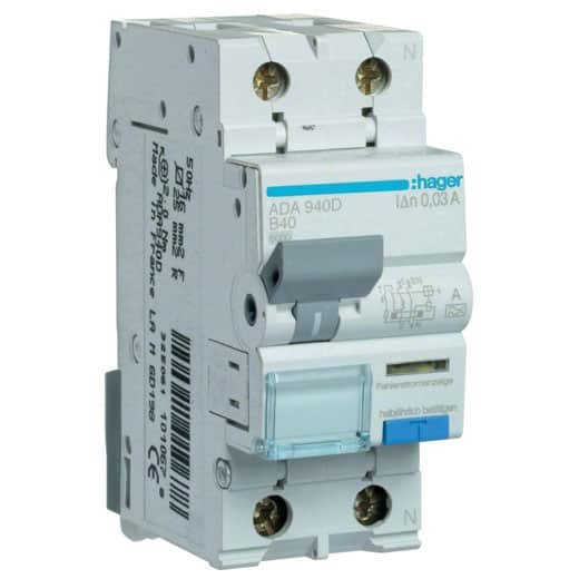 Disjunctor diferential RCBO 1P+N 40A/30mA, B, 6kA, tip A Hager ADA940D