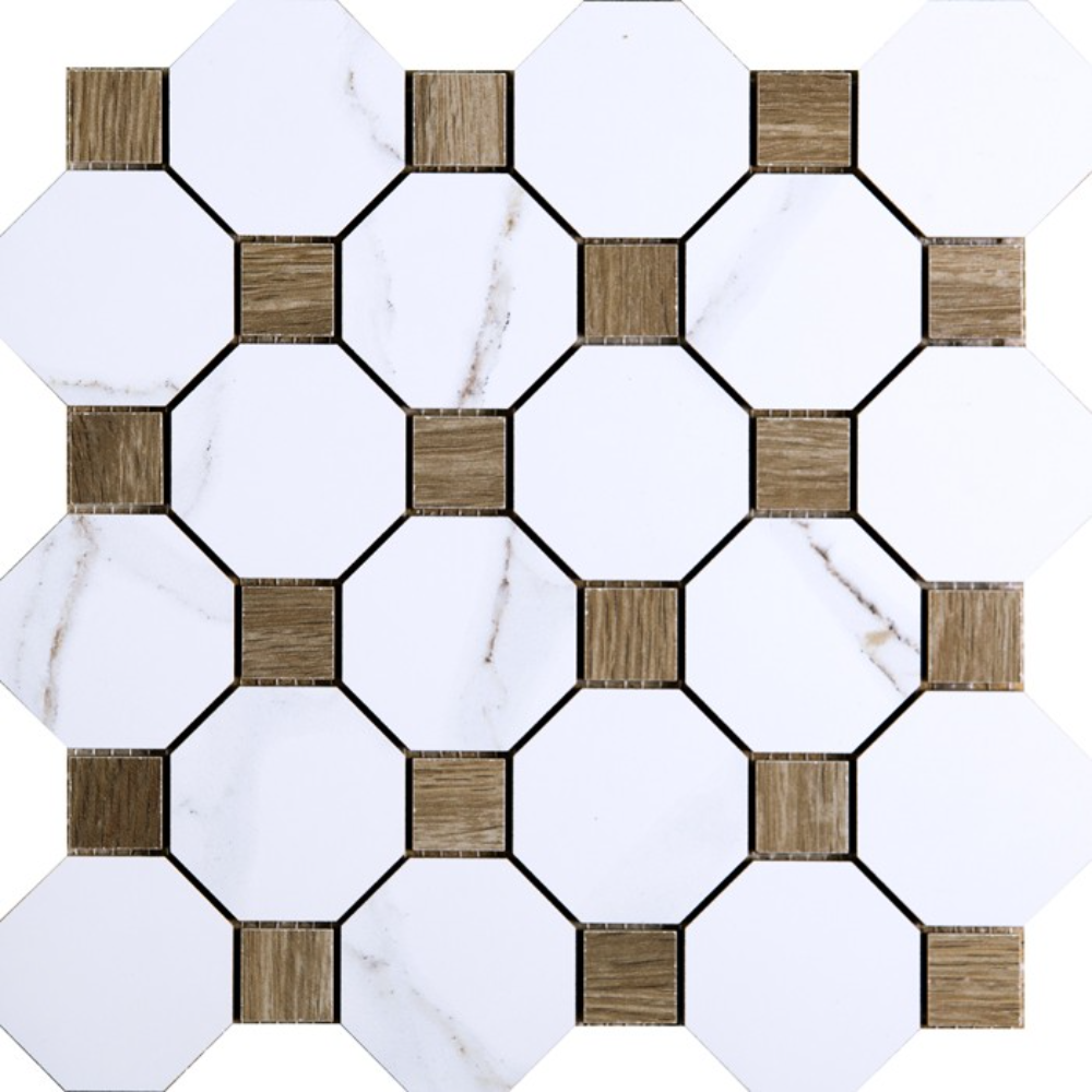 Faianta Kai Ceramics Delphy Mosaic, finisaj lucios, alb, model ondulat, 30 x 30 cm
