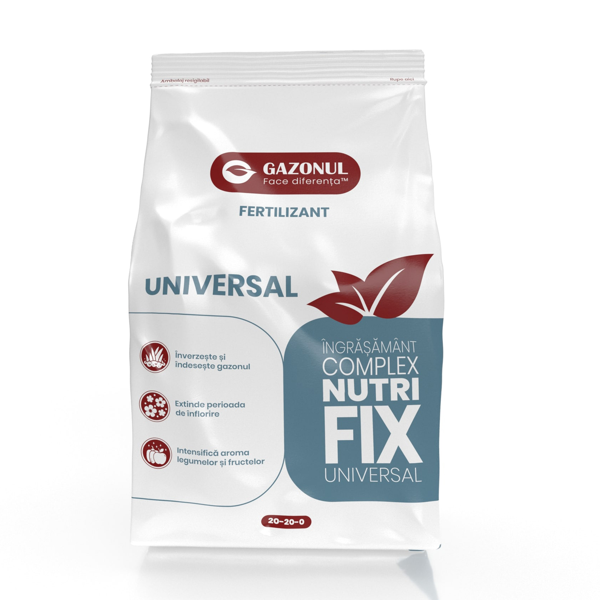 Fertilizantul pentru gazon Gazonul™ UNIVERSAL este un ingrasamant solubil in apa, pe baza de azot si fosfor, care asigura necesarul de macroelemente pentru cresterea si dezvoltarea gazonului, florilor, legumelor și fructelor. Acesta se distinge prin faptul ca are un raport echilibrat de azot si fosf...