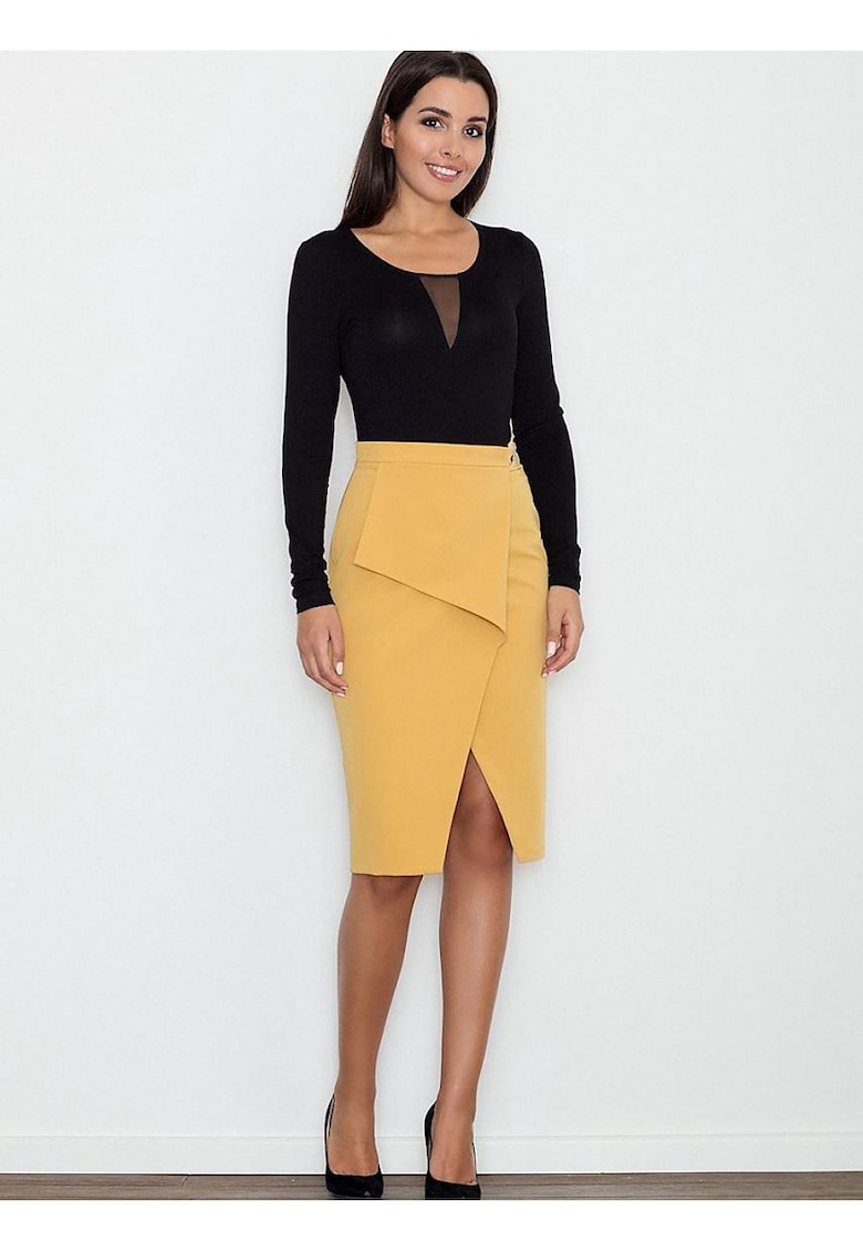 Fusta clasica galbena - viscoza - poliester