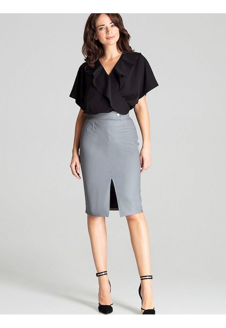 Fusta creion - gri - piele ecologica - despicatura frontala -