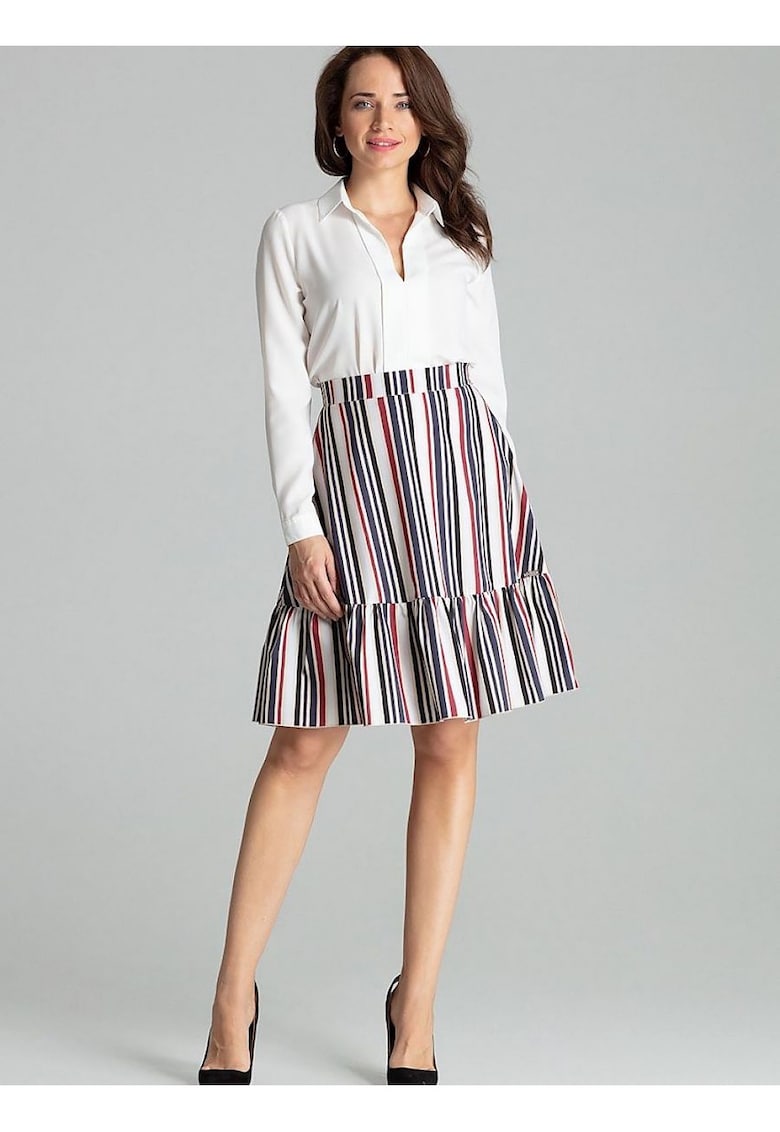 Fusta evazata - dungi - volan decorativ - multicolor - poliester
