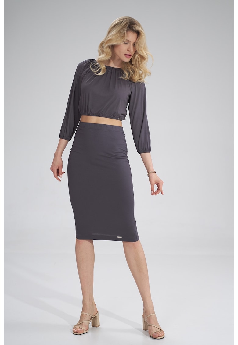 Fusta midi  gri - din viscoza - cu talie inalta -
