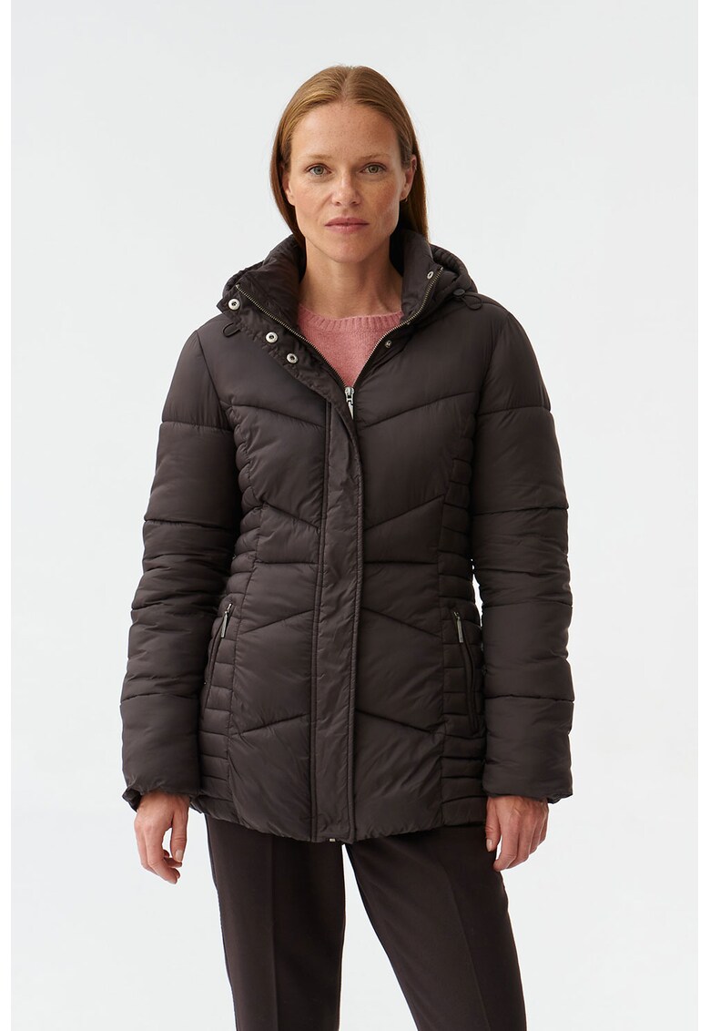 Geaca cu gluga si aspect matlasat - Maro inchis