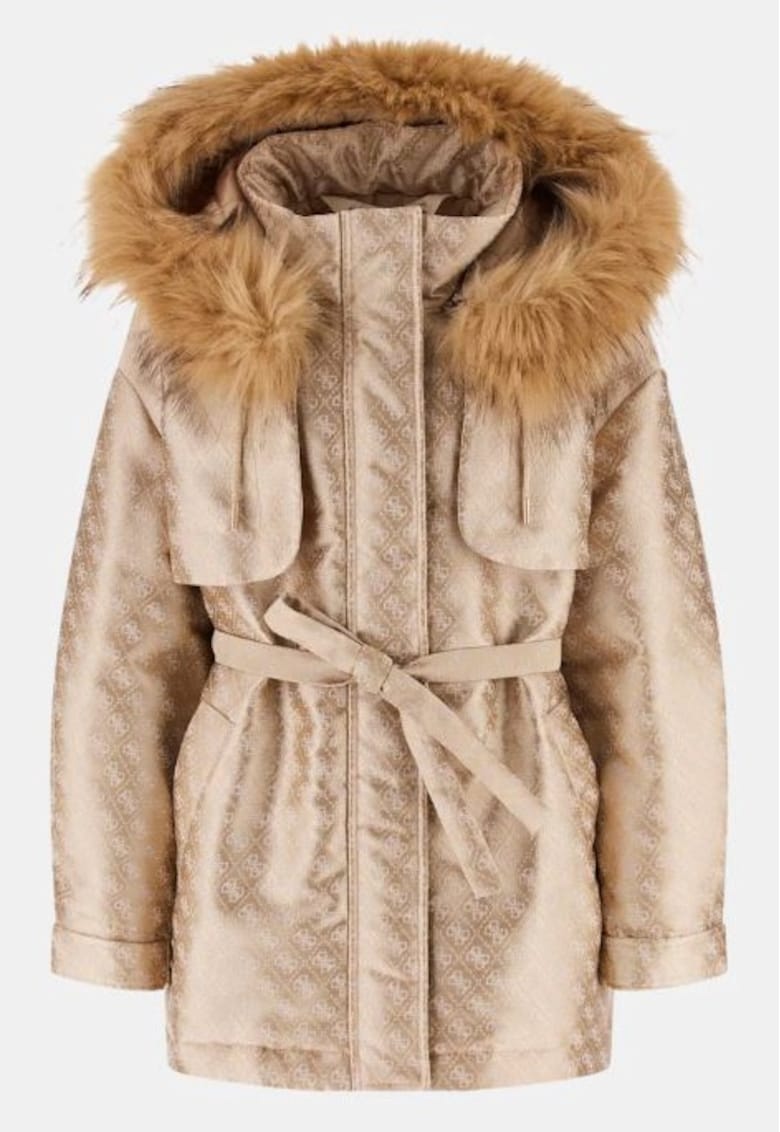 Geaca cu logo si gluga cu puf -