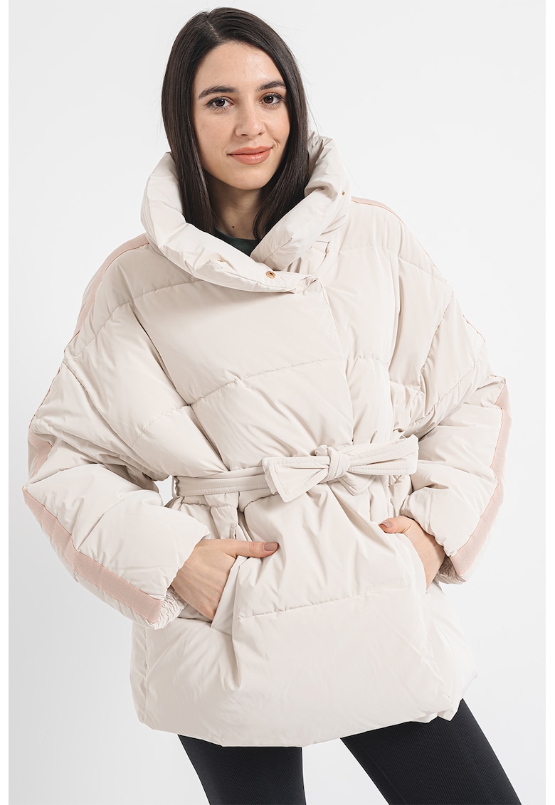 Geaca cu vatelina si guler inalt - Alb fildes/Auriu rose