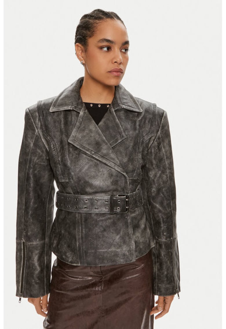 Geaca dama - 304354380 - Piele naturala - Gri - Gri