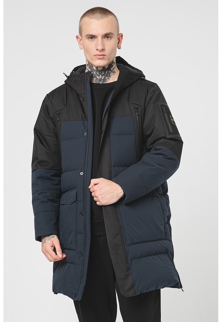 Geaca lunga cu buzunare frontale - Negru/Verde electric/Bleumarin