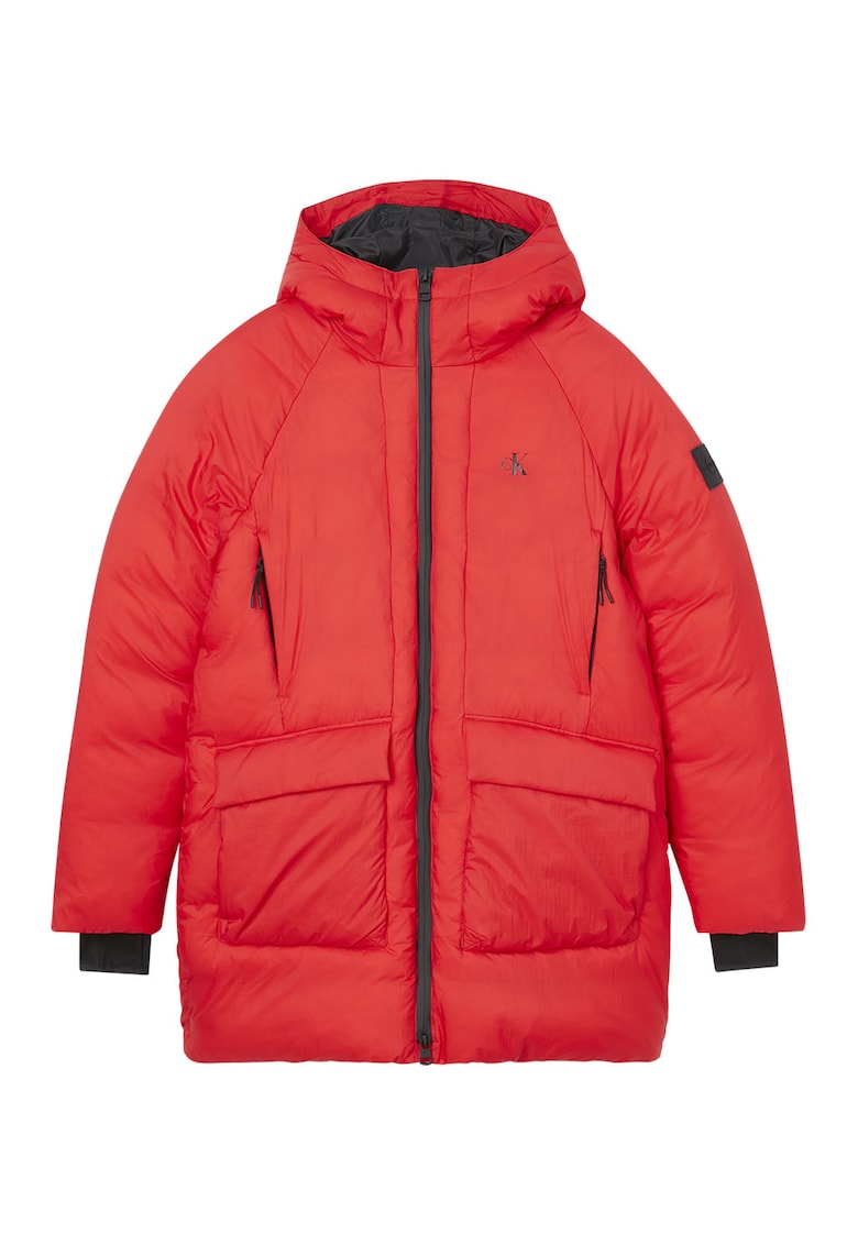 Geaca parka cu vatelina - gluga si detaliu logo - Rosu