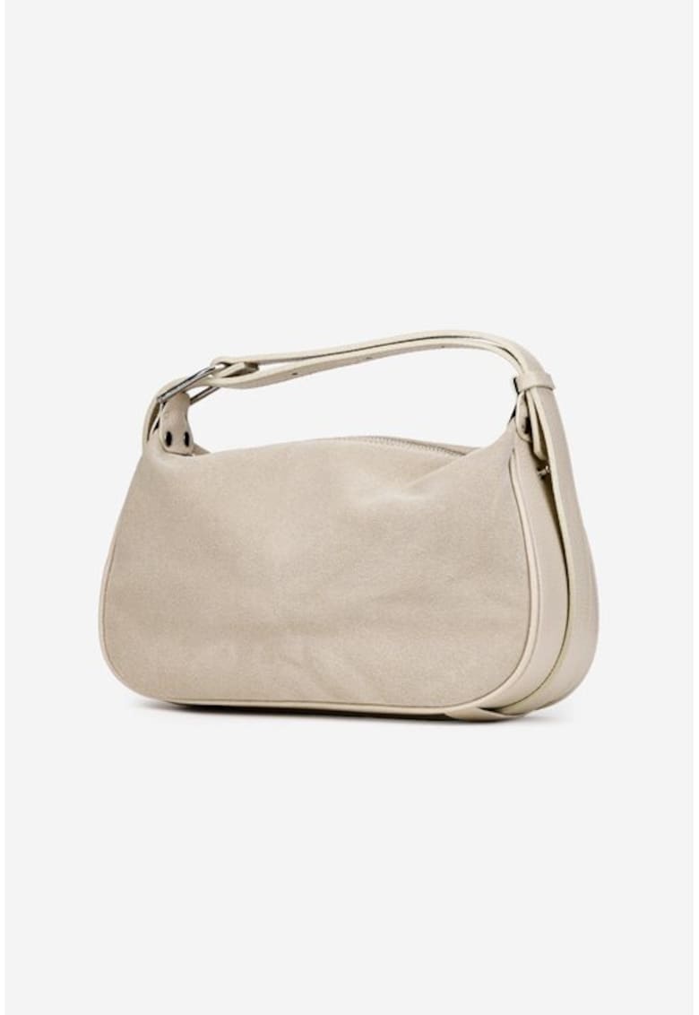 Geanta dama bej din piele intoarsa cu insertii din piele texturata