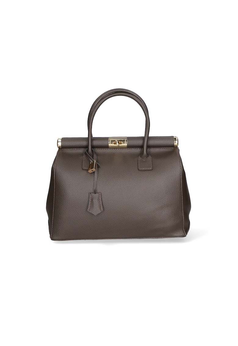 Geanta de piele cu maner si bareta detasabila - Maro inchis
