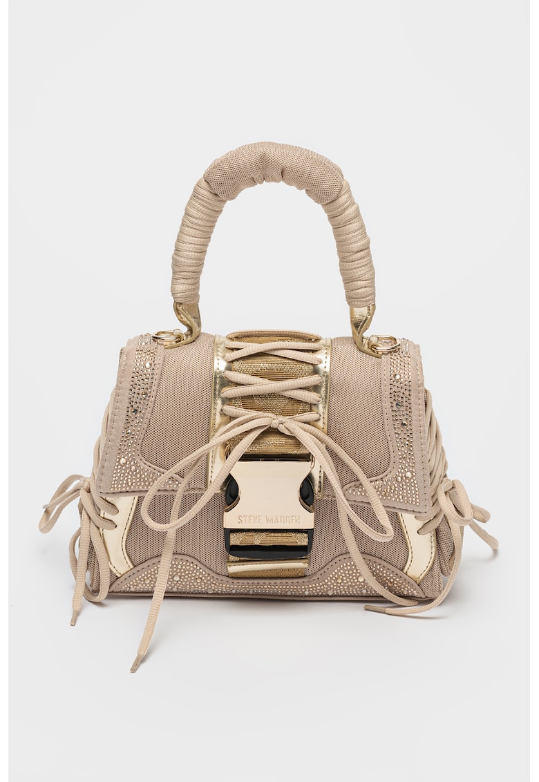 Geanta din piele ecologica cu bareta de umar si logo Diego - Auriu/Bej