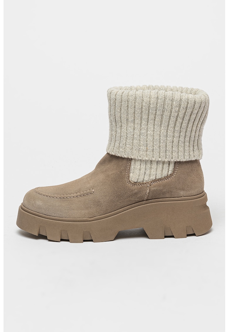 Ghete Chelsea de piele intoarsa cu segment din tricot - Maro taupe/Gri deschis melange