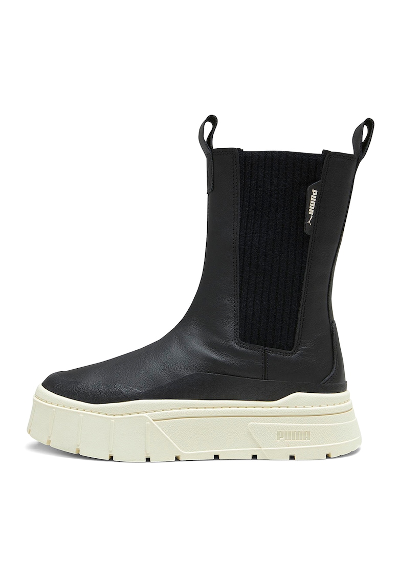 Ghete Chelsea de piele textile Mayze Stack - Negru/Alb murdar