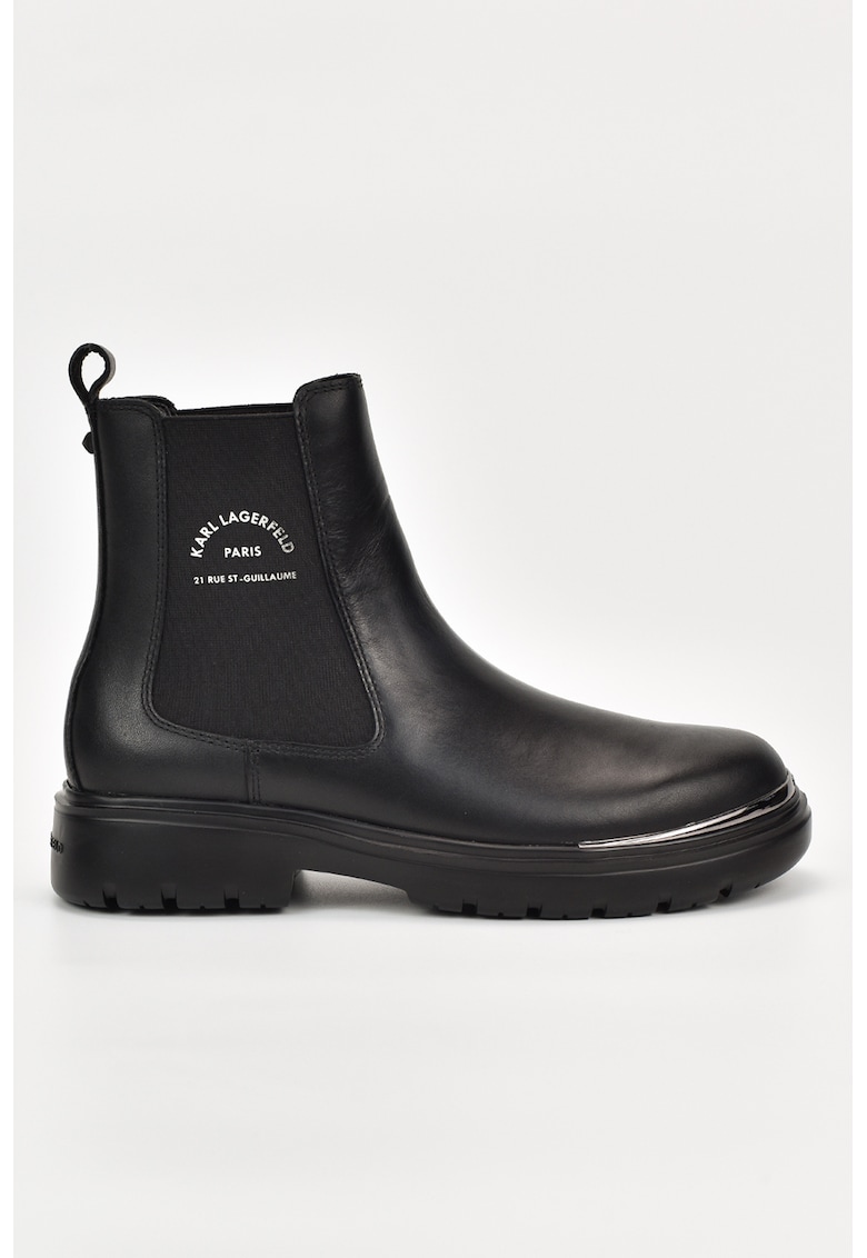 Ghete Chelsea din piele cu segmente din material textil - Negru