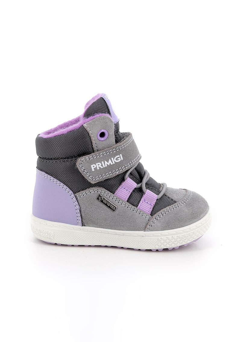 Ghete cu velcro si garnituri de piele intoarsa - Gri/Lila