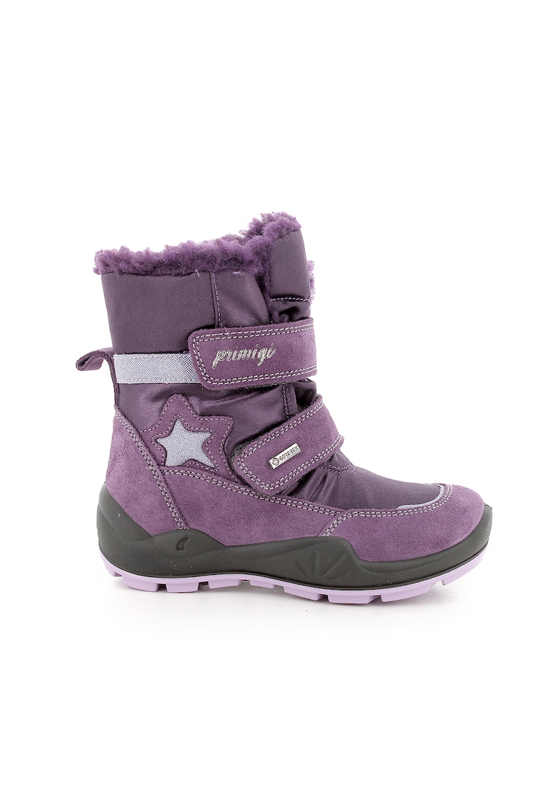 Ghete cu velcro si garnituri de piele intoarsa - Violet
