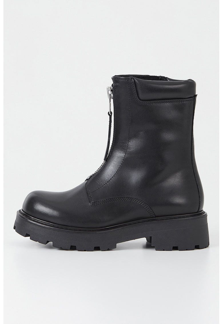 Ghete de piele cu aspect masiv si fermoar pe partea din fata - Negru