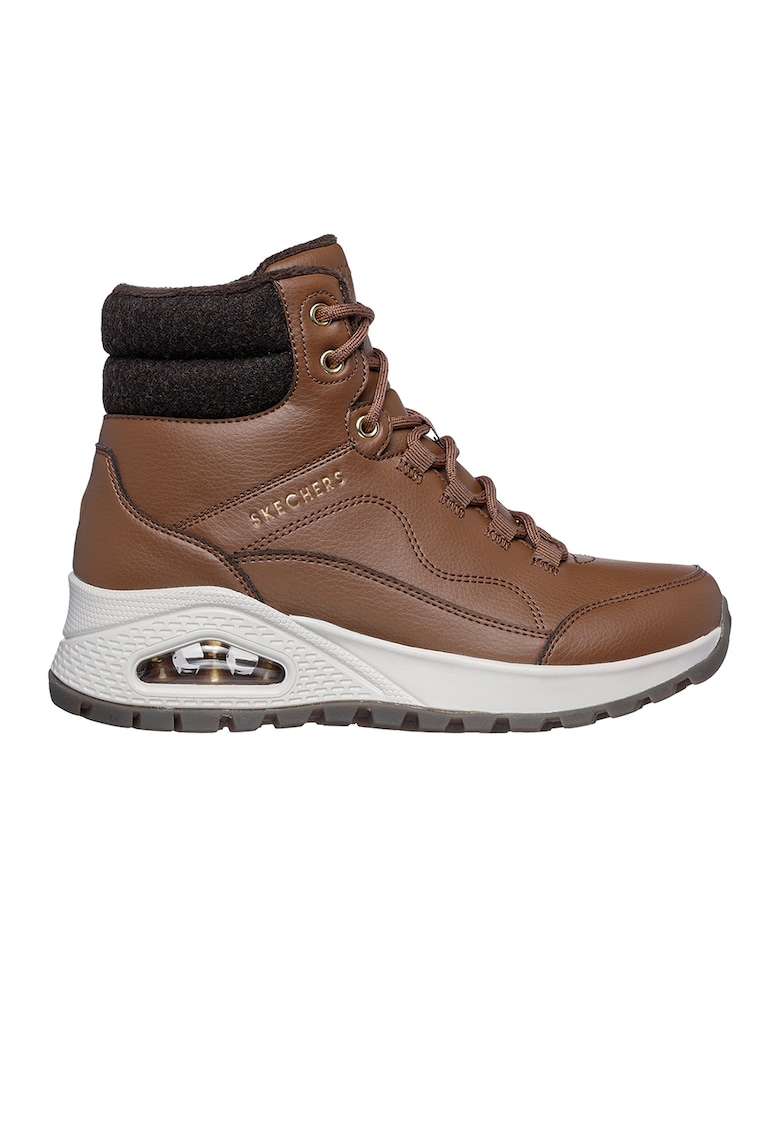 Ghete de piele ecologica cu garnitura de piele ecologica - Negru/Maro