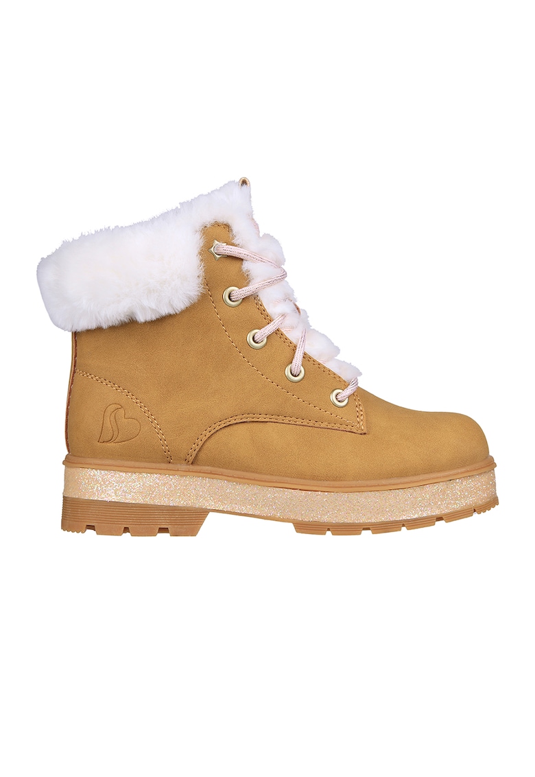 Ghete de piele ecologica cu garnituri de blana sintetica Street Glitz - Maro nisip