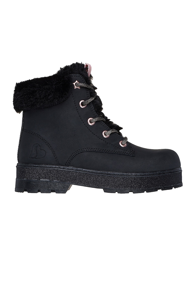 Ghete de piele ecologica cu garnituri de blana sintetica Street Glitz - Negru stins
