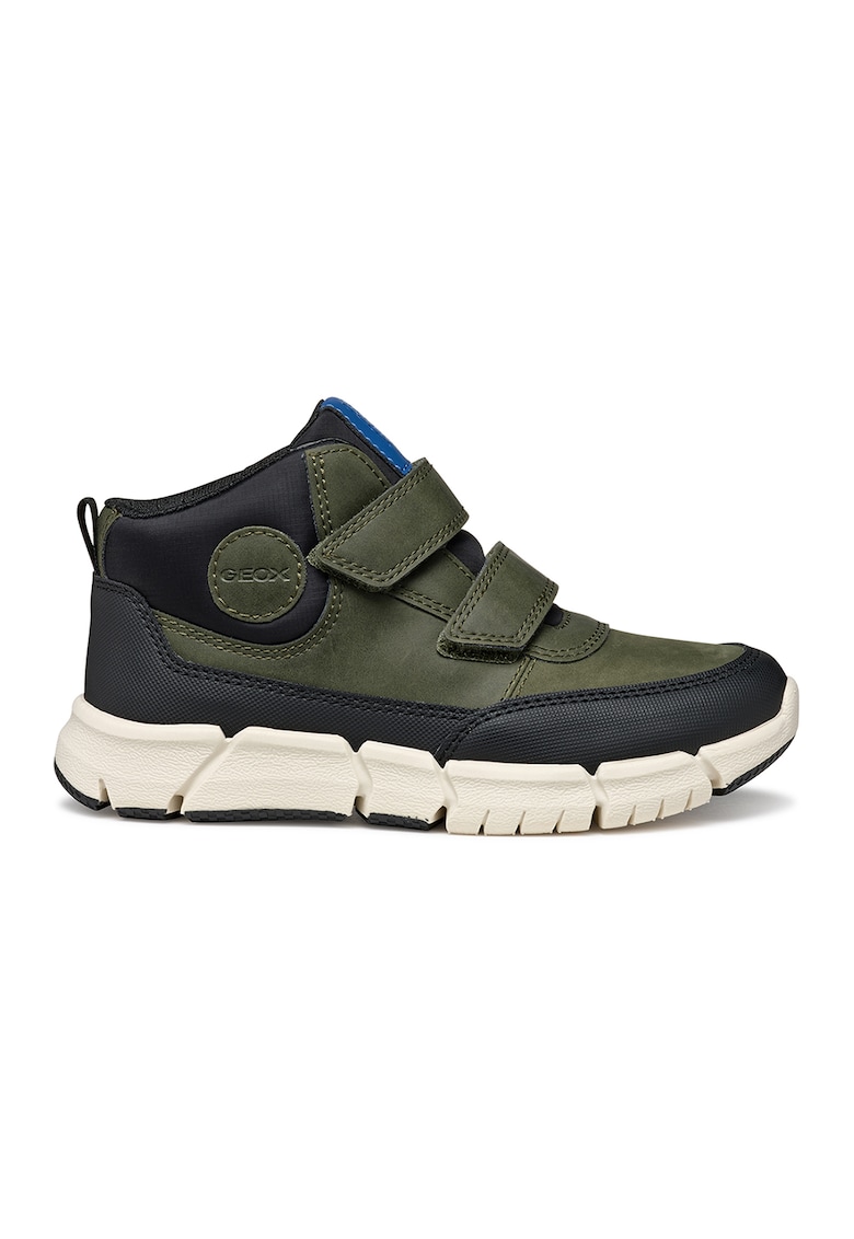 Ghete de piele ecologica cu insertii de piele - Negru/Kaki inchis