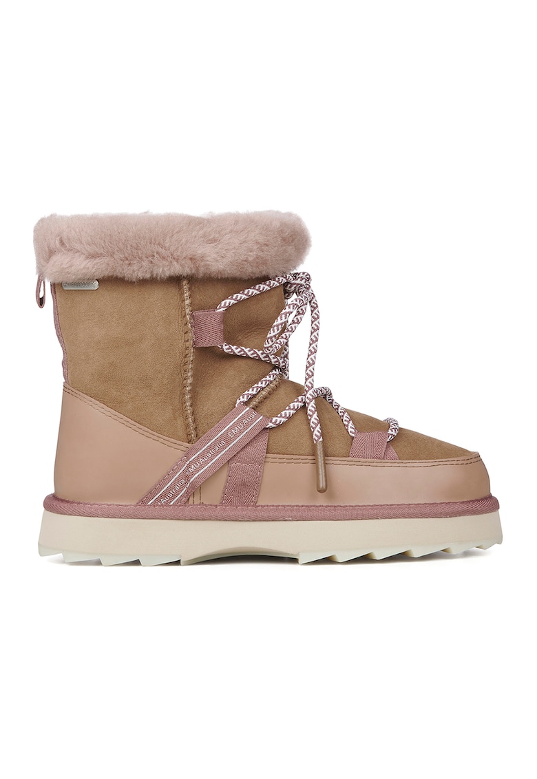 Ghete de piele intoarsa cu fermoar si sireturi Blurred - Maro camel