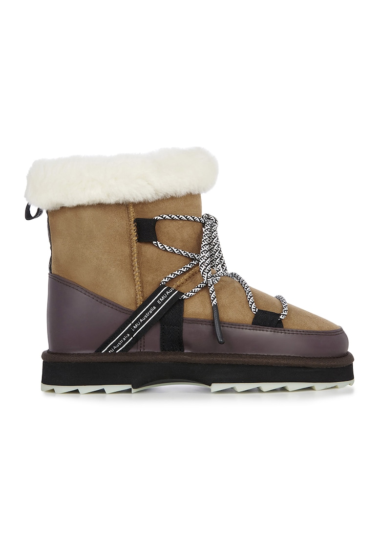 Ghete de piele intoarsa cu fermoar si sireturi Blurred - Violet prafuit/Caramel/Alb murdar