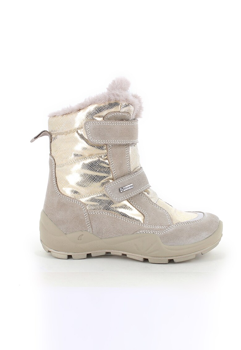 Ghete de piele intoarsa si material textil - Auriu/Crem