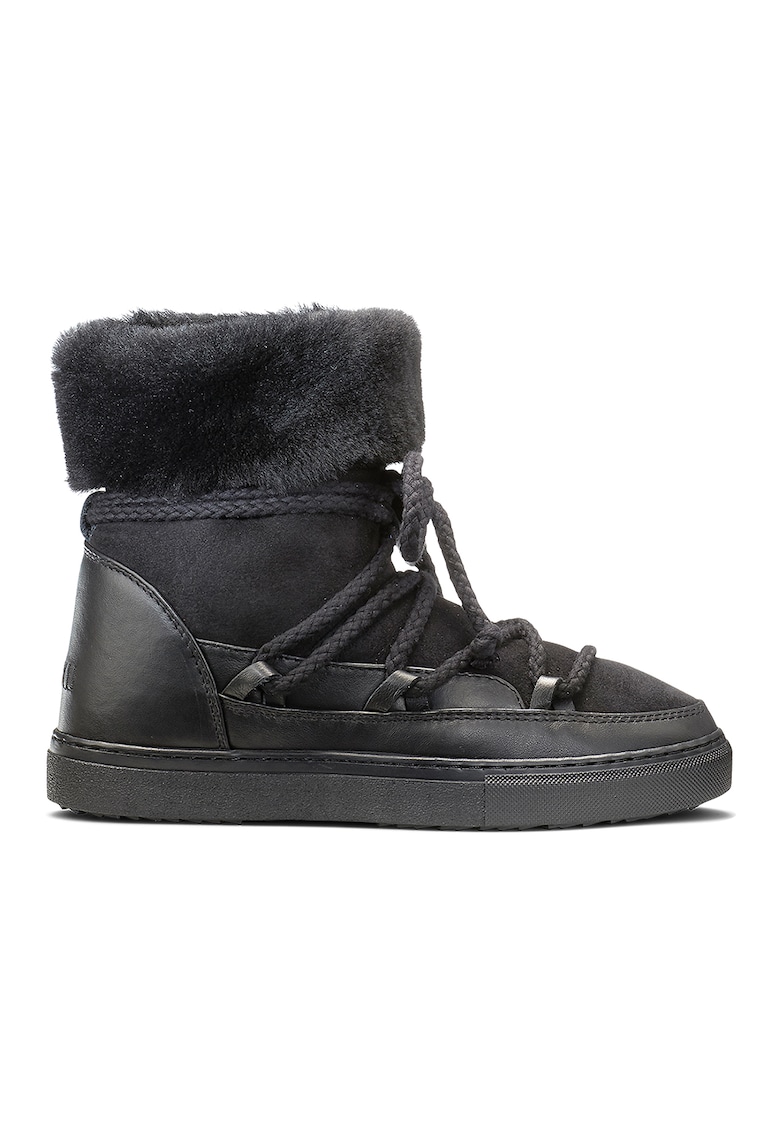 Ghete de piele intoarsa si piele cu garnituri de piele sintetica - Negru