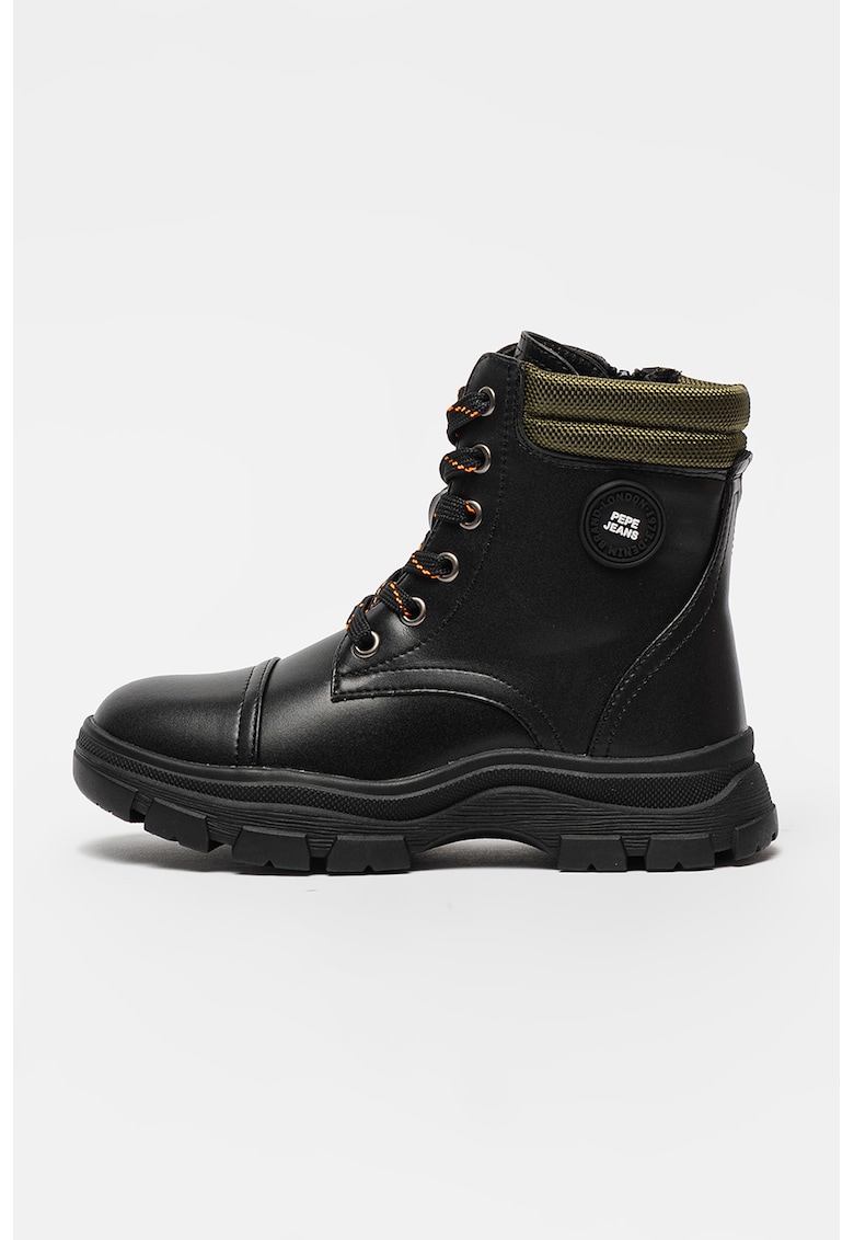 Ghete demi-wedge de piele ecologica - Negru