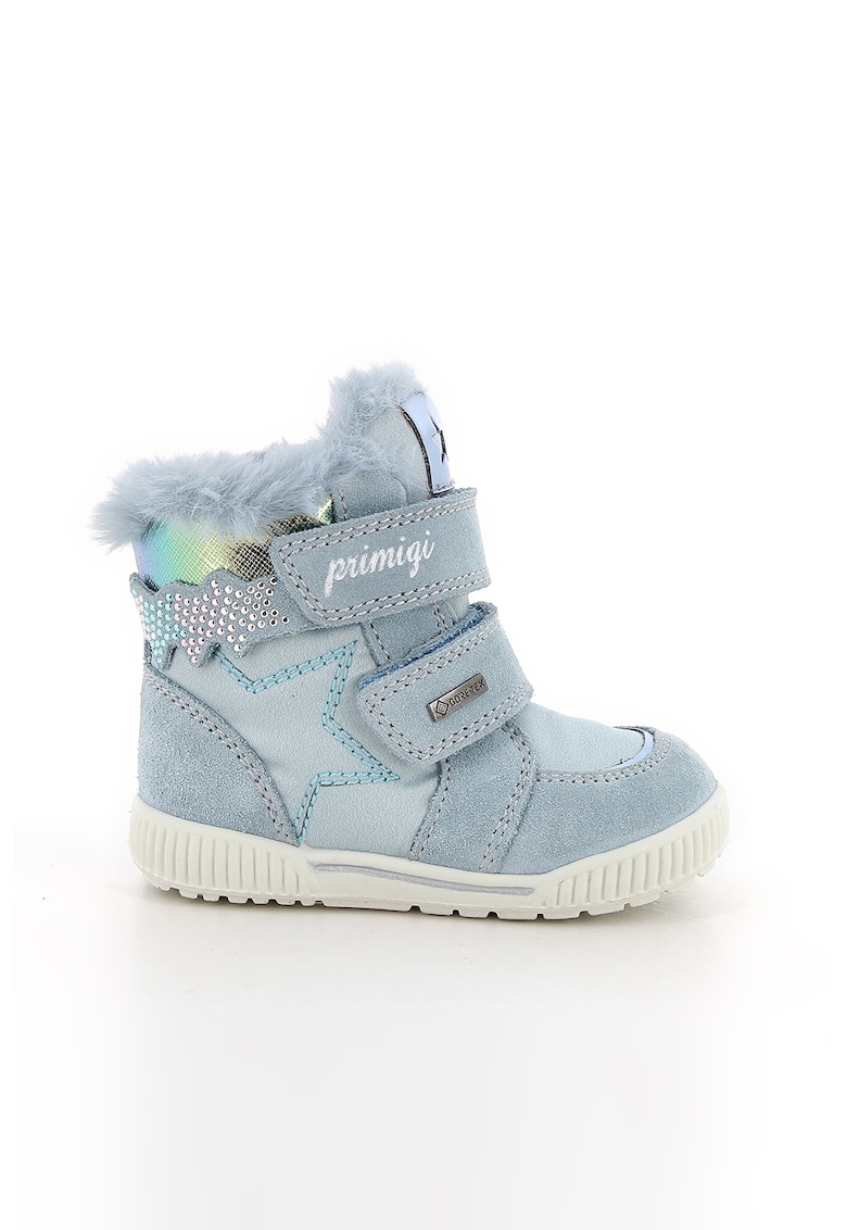 Ghete din material textil cu garnituri de piele intoarsa - Albastru deschis