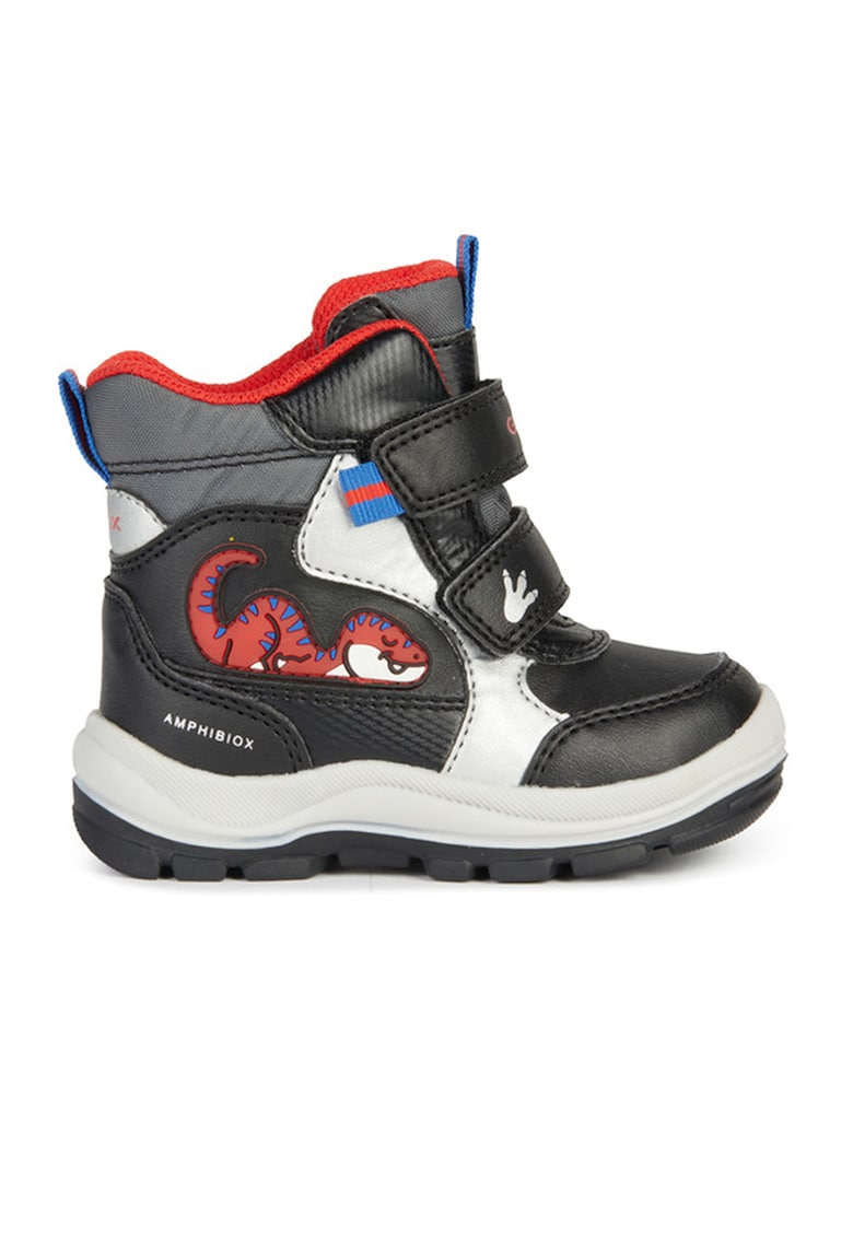 Ghete din piele ecologica si material textil - Rosu/Negru/Gri inchis