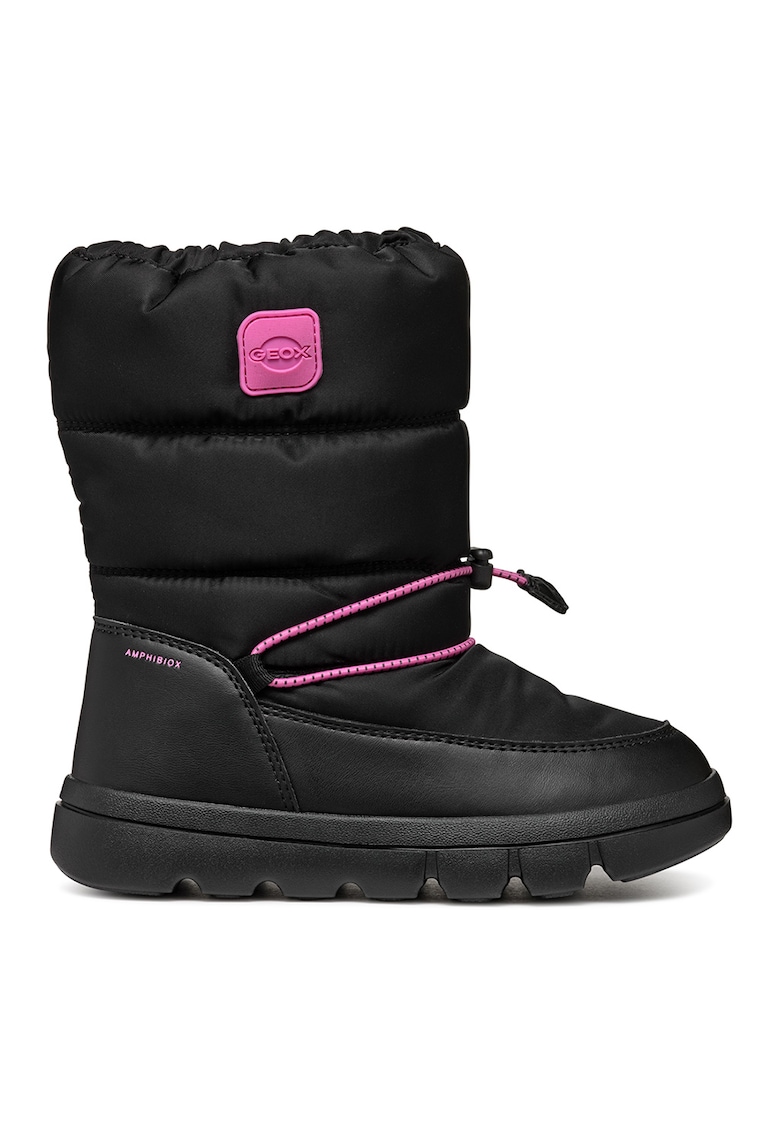 Caracteristici generale Tip produs: ghete Culoare: negru - roz Material: textil - piele ecologica Stil: casual Lungime: peste glezna Sistem inchidere: fara inchidere Tehnologie: geox respira® - amphibiox™ Tip talpa: plata Detalii: sireturi pentru ajustare Detalii material Partea superioara: alte materiale - material textil Material interior: textil Material talpa: alte materiale