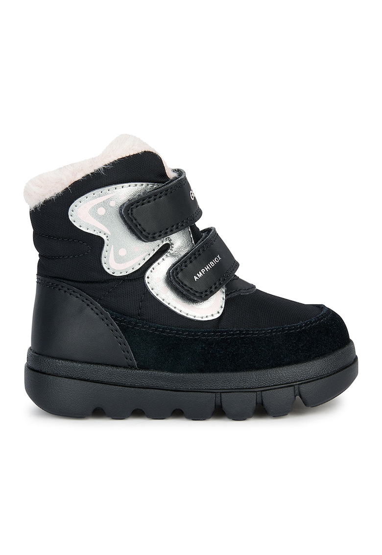 Caracteristici generale Tip produs: ghete Culoare: negru - roz pal Material: textil - piele intoarsa - sintetic Stil: casual Lungime: glezna Sistem inchidere: velcro Tehnologie: geox respira® - amphibiox™ Tip talpa: plata Detalii: imprimeu cu fluture - detalii de blana sintetica Detalii material Partea superioara: textil - alte materiale - piele intoarsa Material interior: textil Material talpa: alte materiale
