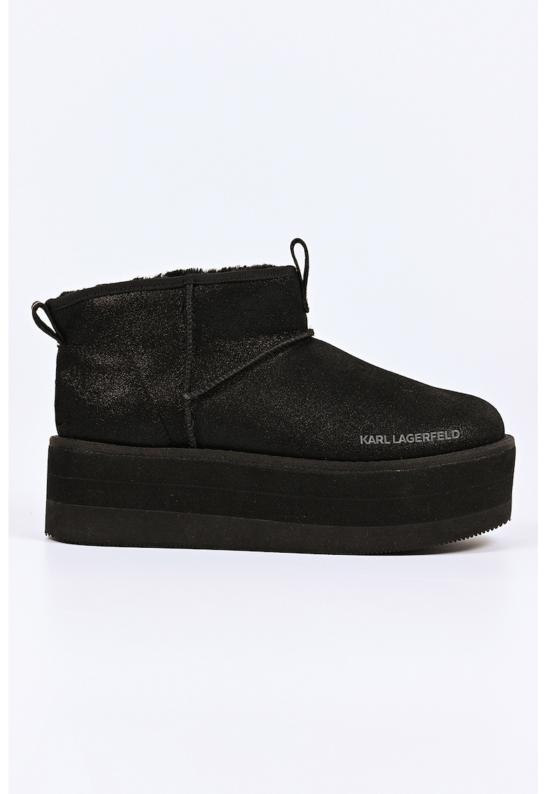 Ghete slip-on din piele intoarsa cu talpa flatform - Negru