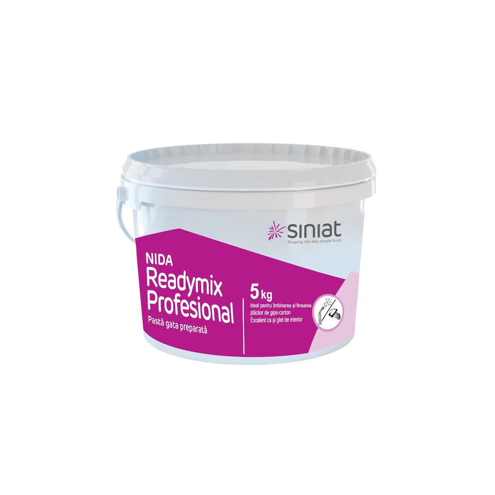 Glet de finisaj pentru interior Siniat Nida Pro Readymix, gata preparat, interior, alb, 5 kg