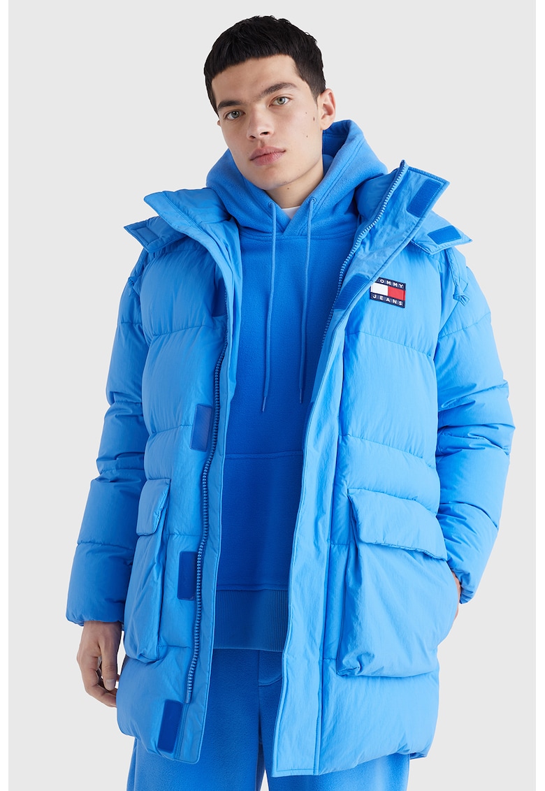 Graca bufanta cu model matlasat si buzunare aplicate - Albastru pastel