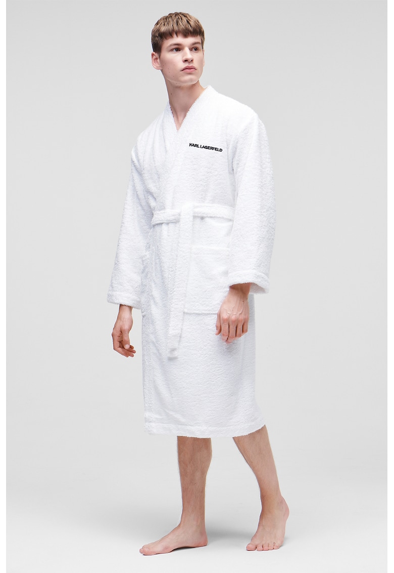 Halat de baie din amestec de bumbac - Alb