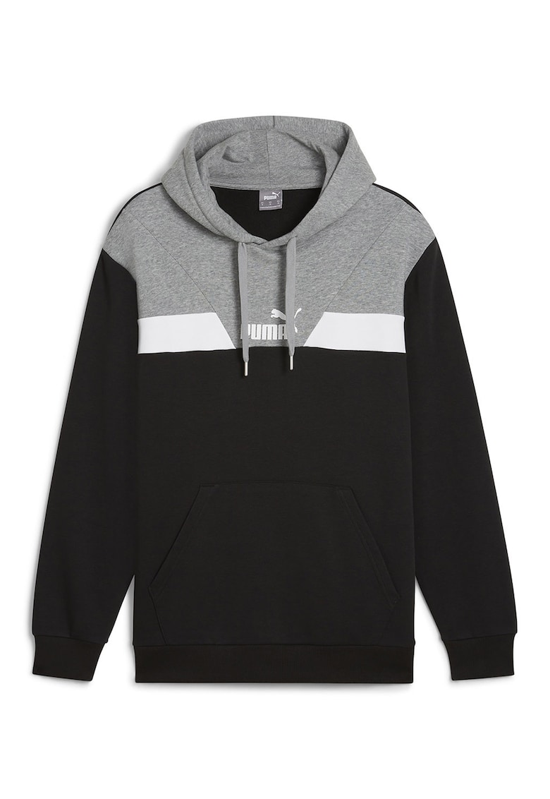 Hanorac cu buzunar kangaroo si model colorblock Power - Alb/Negru/Gri melange